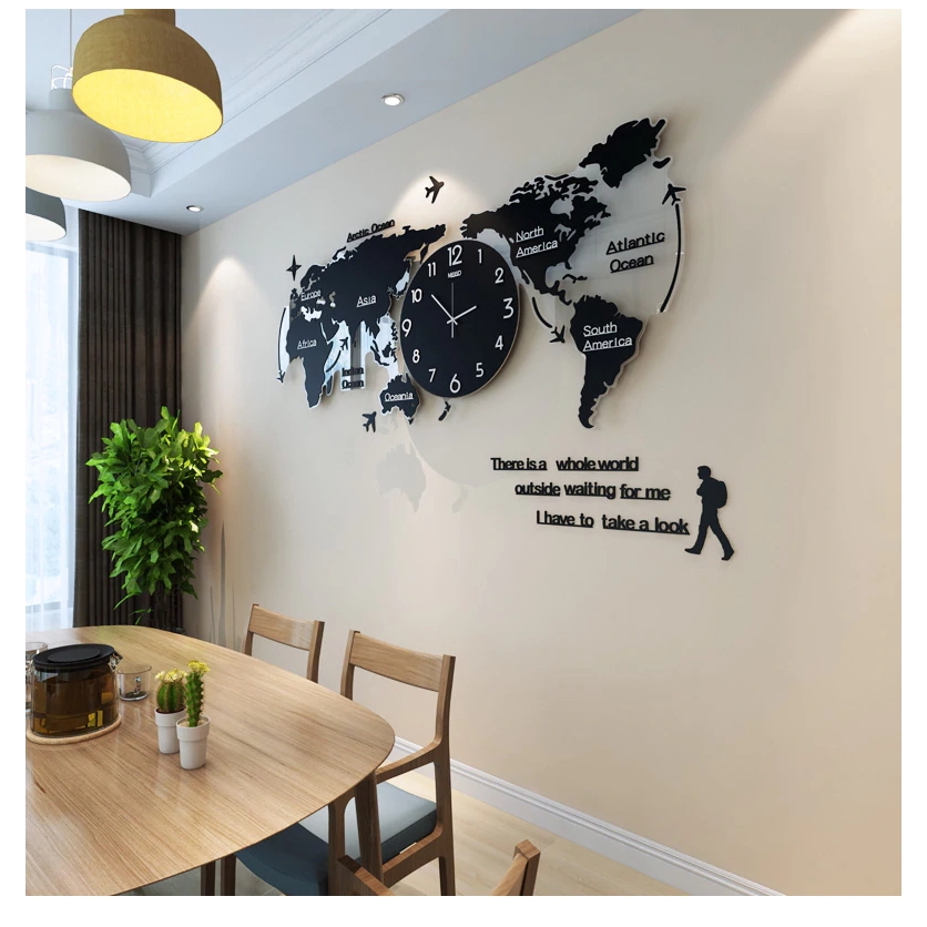 Creative 3d World Map Wall Clock Living Room Large Size Wall Decoration Shopee Malaysia