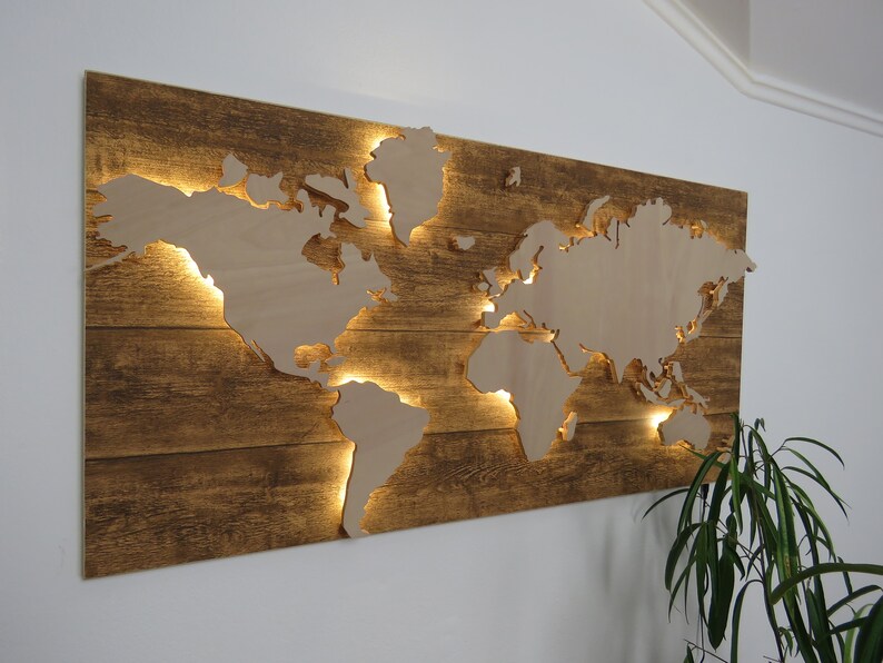 Wood World Map Wall Art Flat Earth Led World Map As Wall Etsy Wall Art Diy Bedroom Led Wall Art Wood World Map