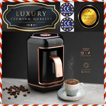 Turkish coffee is usually made in a copper pot called an ibrik, also known as a cezve in other countries. This electric Turkish coffee maker brew fully foamy Turkish coffee that reflects the one brewed in the traditional way using an ibrik The machine makes your coffee making tasks more convenient and easy Pros Good Taste of Coffee The electric Turkish coffee maker gives you brilliant coffee consistently with rich foam. Turkish coffee making Enough to make 4 cups Easy to use Save time and effort in making coffee Works at a speed of 1000 watts Call (SunThur From 930 To 530) Manage Gift lists.