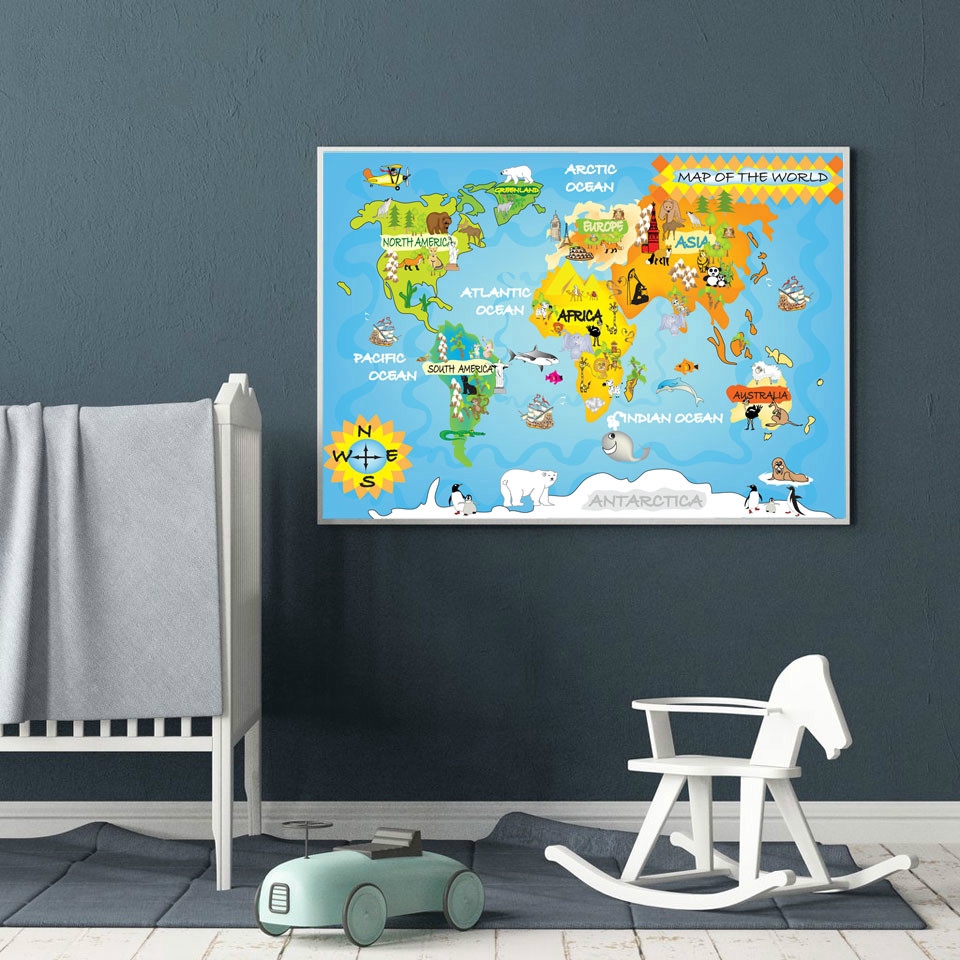 Nordic Children Kawaii Cartoon Animals Kids World Map Prints Canvas Painting Poster Wall Pictures Size Shopee Singapore