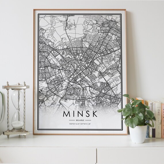Minsk Stadtplan Digital Herunterladen Schwarz Weiss Druck Von Etsy