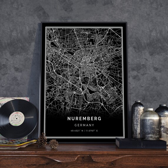 Nurnberg Schwarze Karte Schwarz Weiss Karte Kunst Stadtplan Etsy