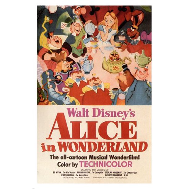 Walt Disney S Alice In Wonderland Movie Poster 1951 24x36 Vintage Cartoon Walmart Com Walmart Com