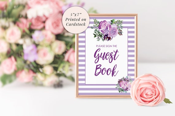 Wedding Guest Book Sign 5x7 Print Bridal Shower Sign Guest Book Table Wedding Sign Baby Shower Signs Purple Floral Printed Shipped By So Sweet Party Shop Catch My Party