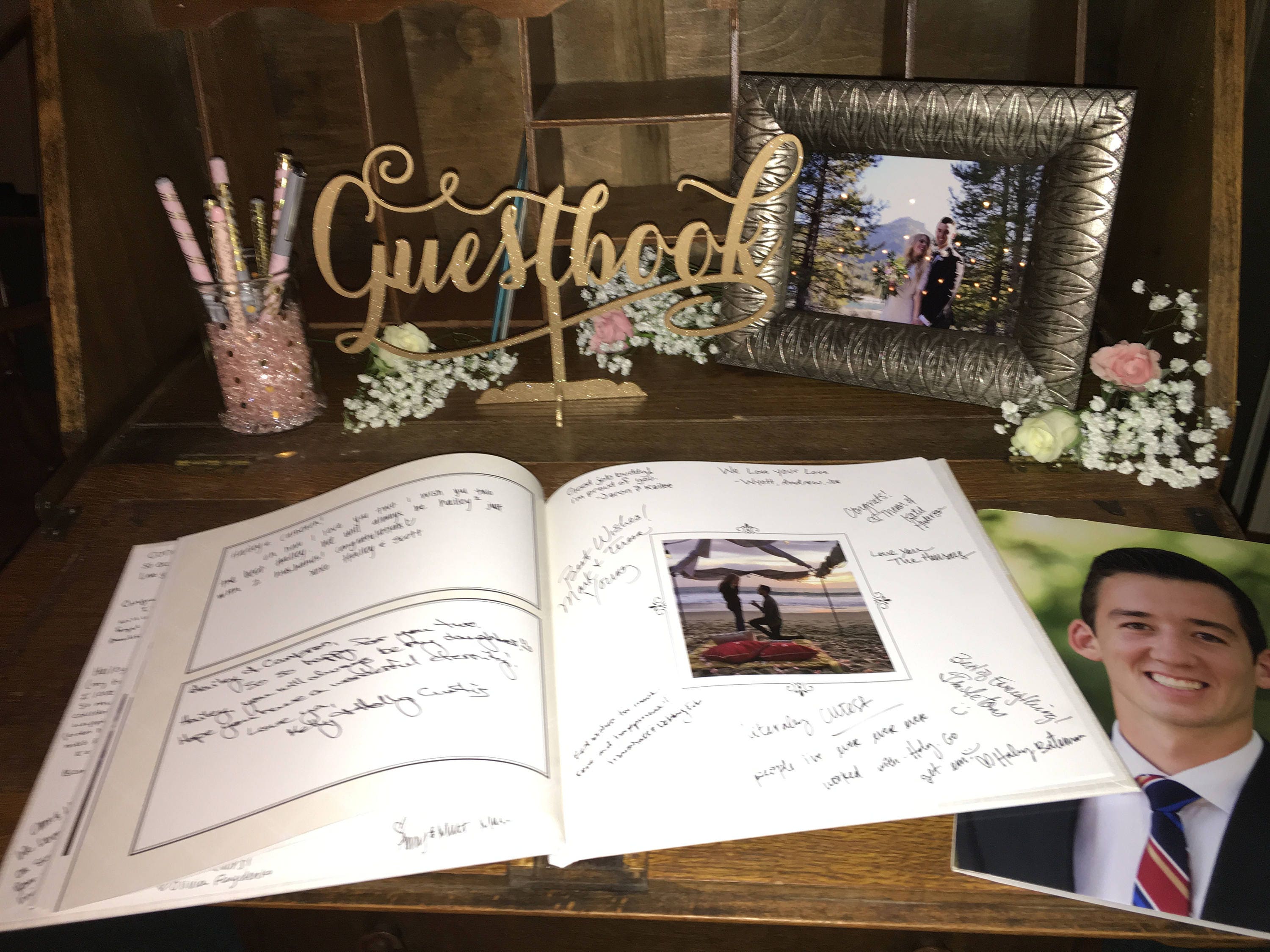 Wood Pen Holder, Guest Book, Wedding Table, Wedding Pen Holder, Rustic Country Wedding theflowerpatch From shop theflowerpatch 5 out of 5 stars (6,808) 6,808 reviews $ 2900 FREE shipping Favorite Add to. Feb 10, 19 Floral Design By Maria posted on Instagram “Guestbook table details!. Wood Guest book Sign Wedding Guestbook table sign Wedding sign Graduation sign Wooden Guestbook Sign KobasicCreations From shop KobasicCreations 5 out of 5 stars (5,472) 5,472 reviews $ 1999 FREE shipping Favorite Add to Acrylic Photo Booth Guestbook Sign 5 x 7 with stand C0024 JuniperEngraving From shop JuniperEngraving.