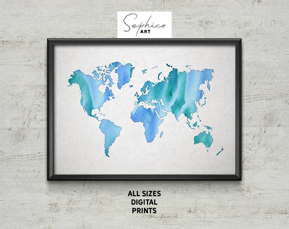 World Map Poster Watercolor Painting Map Abstract Decor Etsy