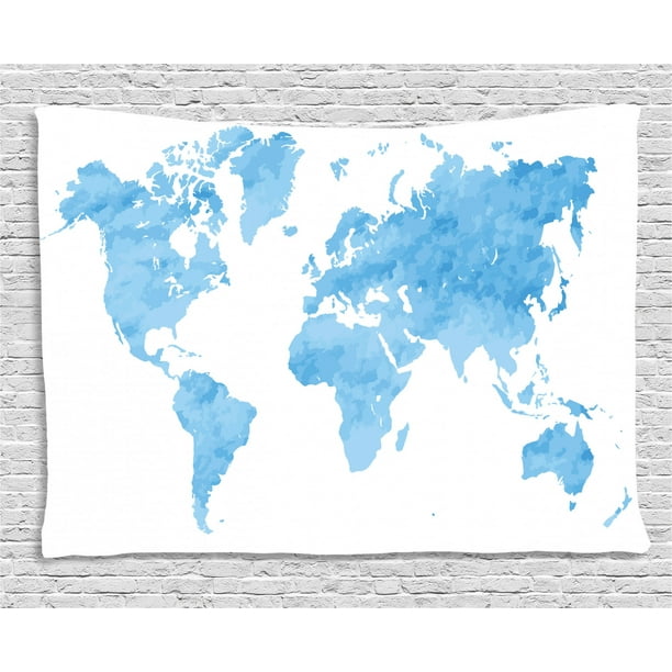 Map Tapestry Blue Watercolor Style World Map Artistic Pastel Colored Display Of Continents Wall Hanging For Bedroom Living Room Dorm Decor 80w X 60l Inches Pale Blue White By Ambesonne Walmart Com
