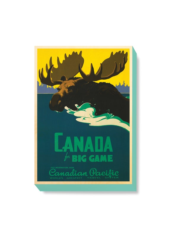 Vintage Travel Hunt Moose Canada Canadian Pacific Railway Art Etsy