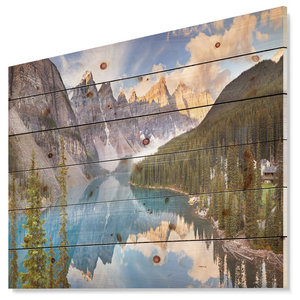 Designart Moraine Lake Banff Park Canada Landscape Wood Wall Art Rustic Prints And Posters By Design Art Usa