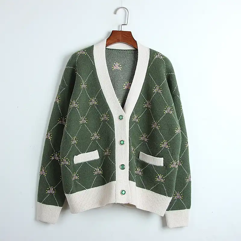 19 Autumn Winter New Style Crew Neck Green Embroidery Flower Women S Knitwear Cardigan Coat Sweater Korean Style Wear Curren Cardigans Aliexpress