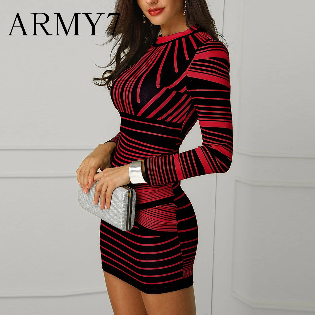 Sexy Club Dress Women Bodycon Dress Long Sleeves Striped Printed Zipper Party Evening Club Tight Mini Wrapped Dress Red Vestidos Dresses Aliexpress