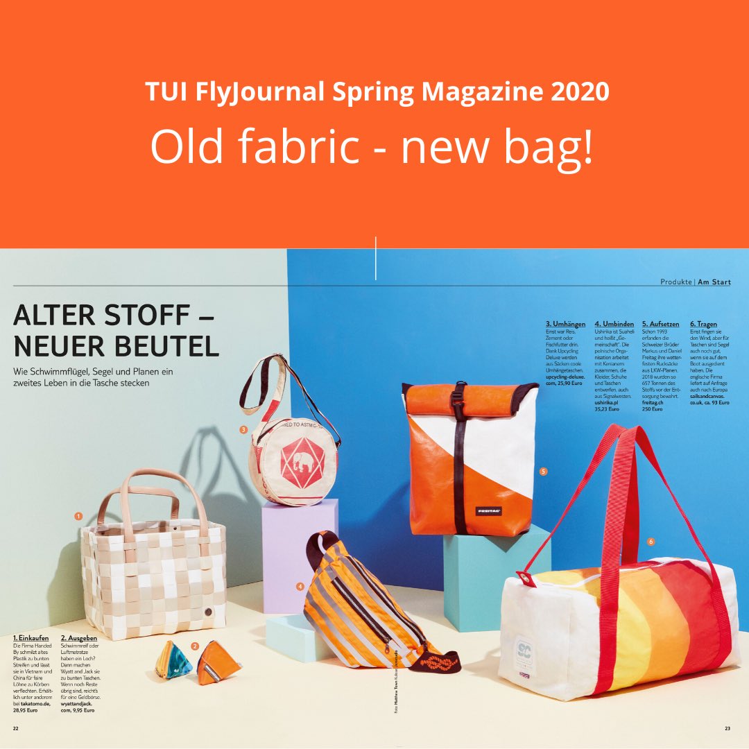 Sails And Canvas We Are Delighted To Be Featured Inside The Spring Edition Of Tui S In Flight Magazine The Theme In This Season S Product Page Is Upcycling One