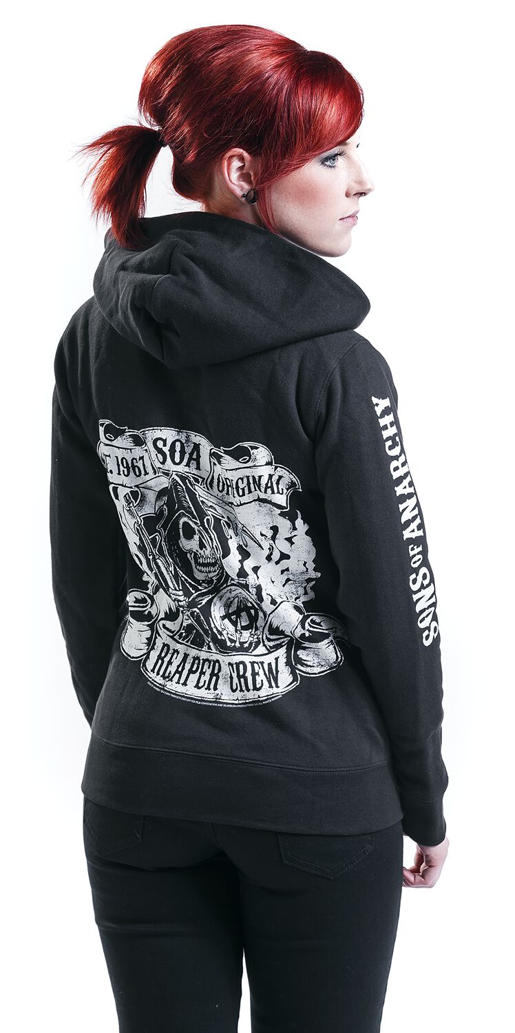 Sons of Anarchy Fan Shop You’ll find all the Sons of Anarchy fan merch you could want at the EMP Sons of Anarchy shop You’ll find Sons of Anarchy TShirts and Sons of Anarchy zip up hoodies and sweat pants within the EMP merch range They all have the grim reaper logo and a SONS OF ANARCHY print.