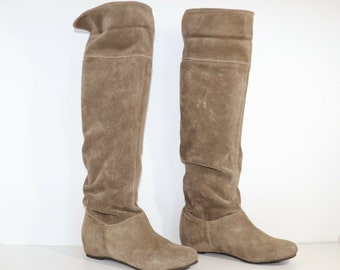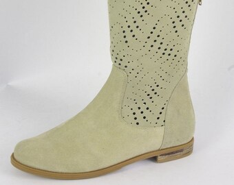 Damen Hohe Stiefel Beige Wildleder Made In Italy Kikkiline