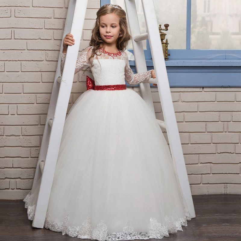 Langarmelige Weisse Blume Madchen Prinzessin Kleid Kommunionkleider