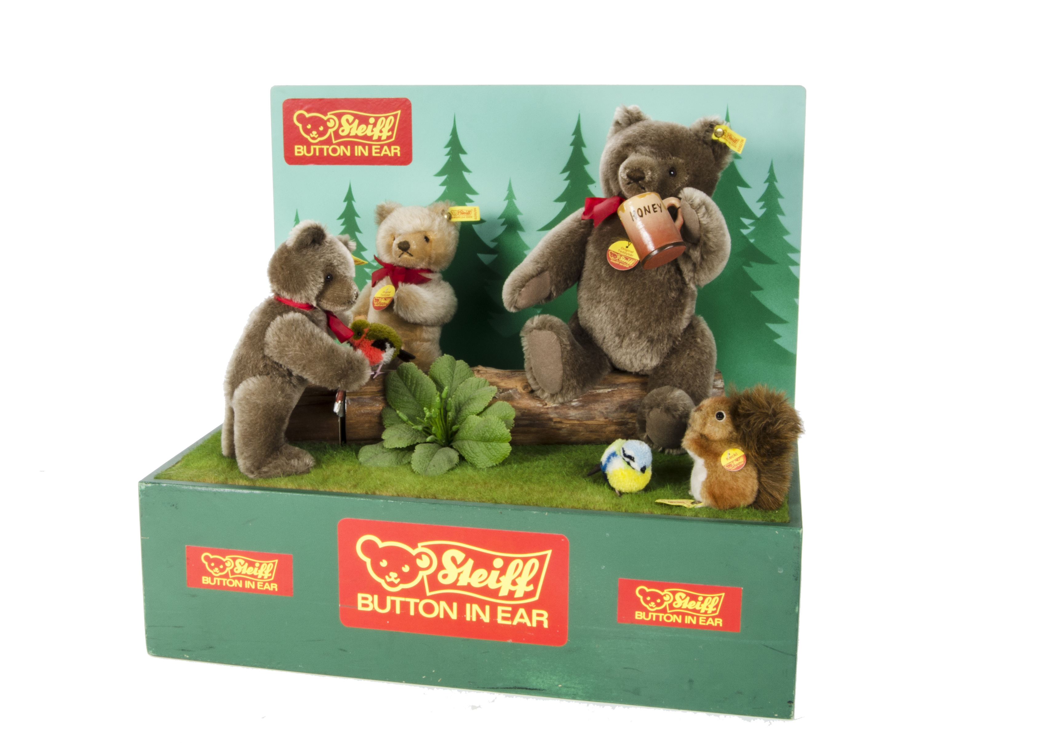 A Rare Steiff Teddy Bear Shop Display Circa 1980 With Three Original Teddy Bears A Kecki Squir