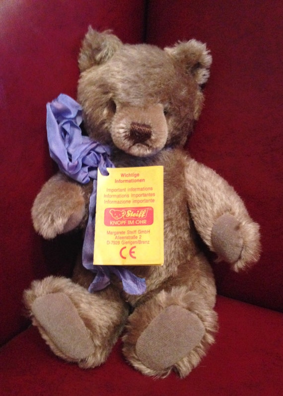 Steiff Mask Face Original Teddy Bear 1980's, Steiff Button The Optimists ~ $37 The Port Collection Antique Steiff Teddy Bear 16 inches tall The Port Collection $1,650 OFFER The Optimists Martin, Gorgeous Vintage Steiff Miniature Teddy Bear, Steiff Button The Optimists ~ $141 The Optimists. Whether young or youngatheart, there is a Steiff Teddy for everyone We invented this classic toy nearly 1 years ago Generations later, our famous quality Teddies with the legendary "Button in Ear" are as treasured as ever There are cuteandcuddly bears for children, and softandsweet bruins for babies All are fully machine washable. He has his button and flag His EAN is 02/36, and he was made between 1968 and 1990, but I would say this is a more modern one from the early 1980s He is made of a caramel mohair He has felt paw pads His growler is working.