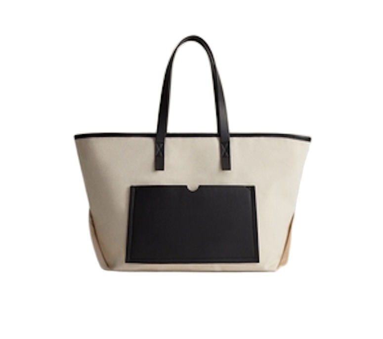 Mango Mng Cotton Weave Summer Shopper Tote Bag Black Contrast Panel Pockets Lazada Singapore