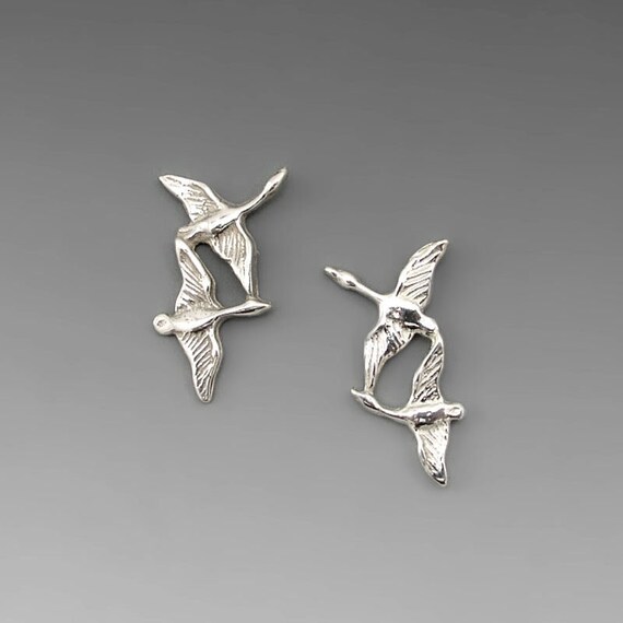 Geese Earrings Post Sterling Silver Jewelry Flying Geese Etsy