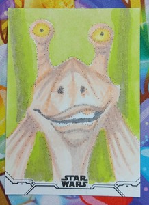 Topps Star Wars Holocron Sketch Card Jar Jar Binks By Logan Monette 1 1 Ebay