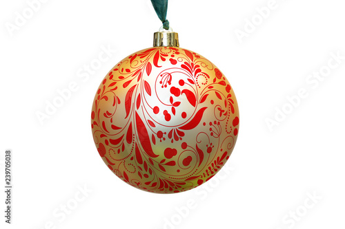 Goldene Weihnachtskugel Mit Roten Ornamenten Auf Weissem Hintergrund Buy This Stock Photo And Explore Similar Images At Adobe Stock Adobe Stock