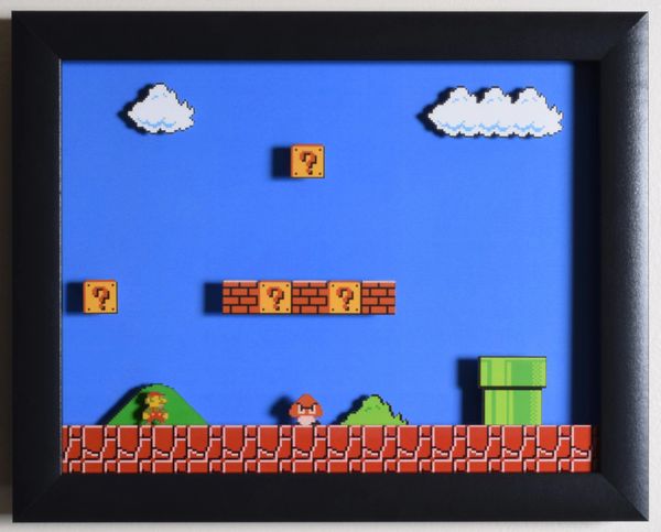 Super Mario Bros Shadow Box 1 1 Nes Nintendo 3d Shadow Etsy